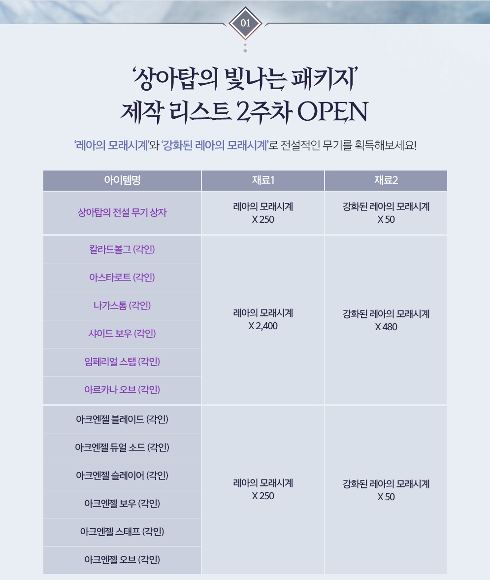 1월 마지막 업데이트이지만 별다른 사항은 없고 전설무기와 영웅무기가 제작이 가능합니다.
