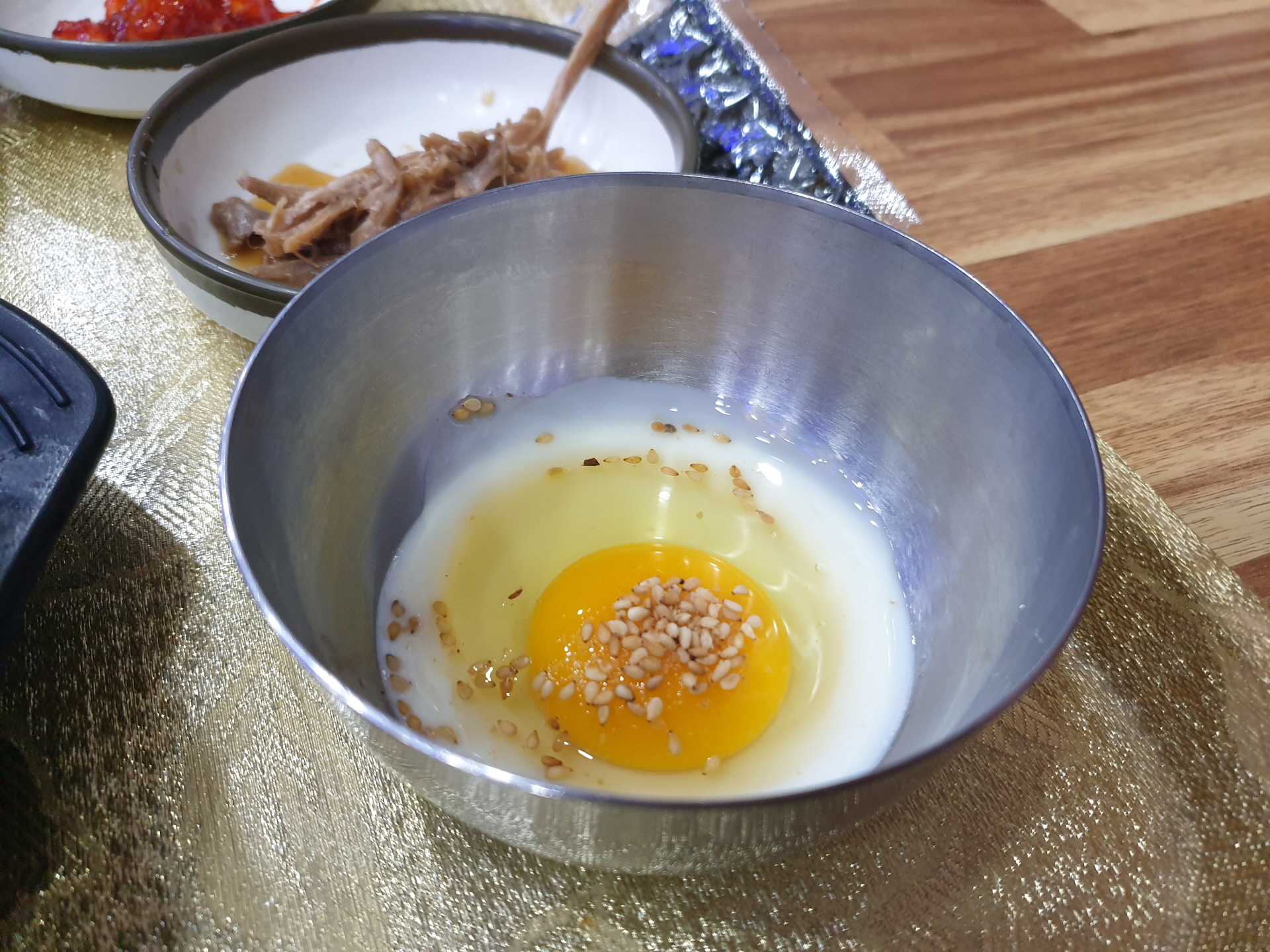 김과 국물 넣고 비벼먹으면 맛있는 수란.