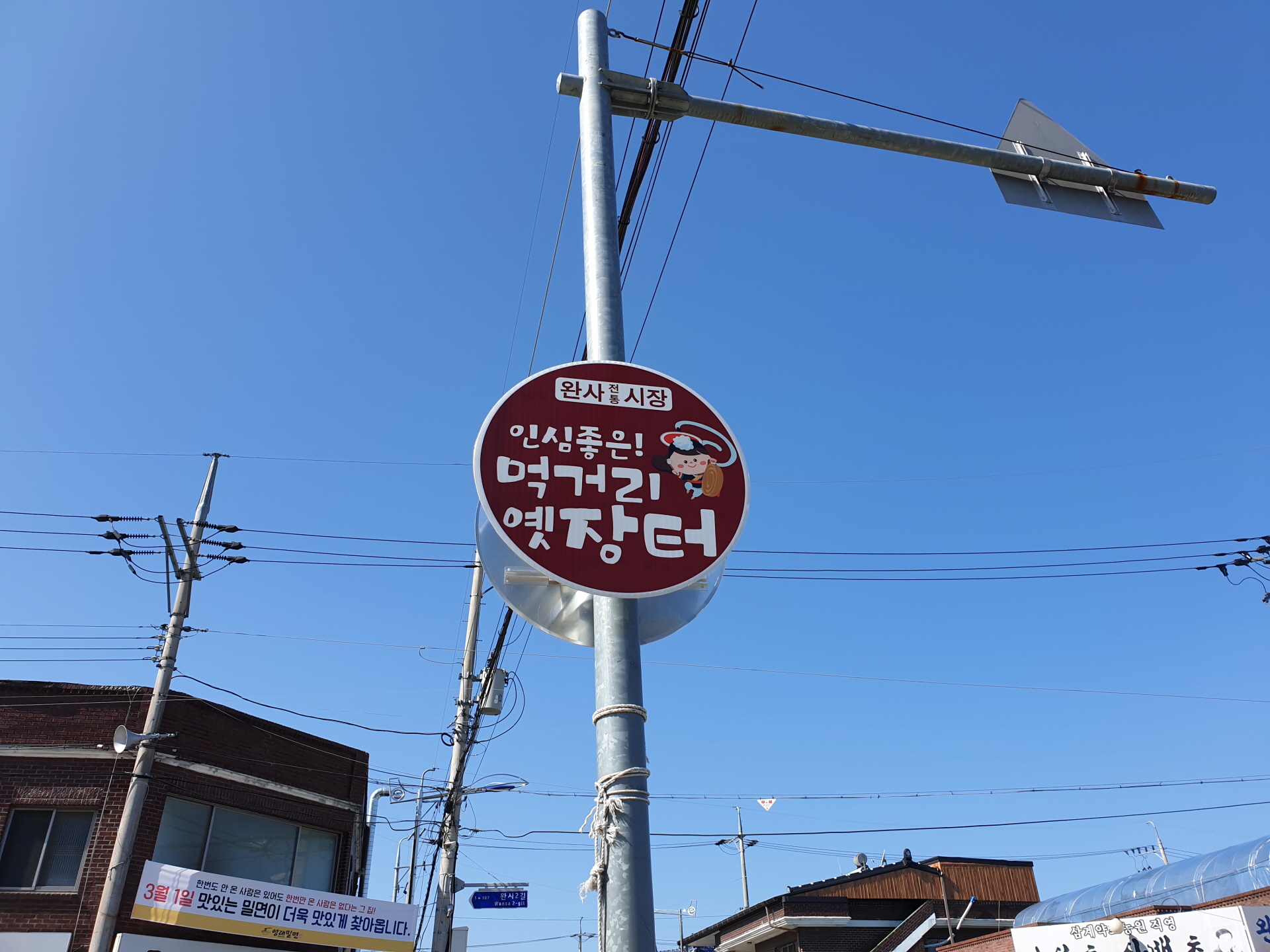 완사전통시장 앞쪽으로 주차장이 있고 입구는 길거너서 있습니다.
